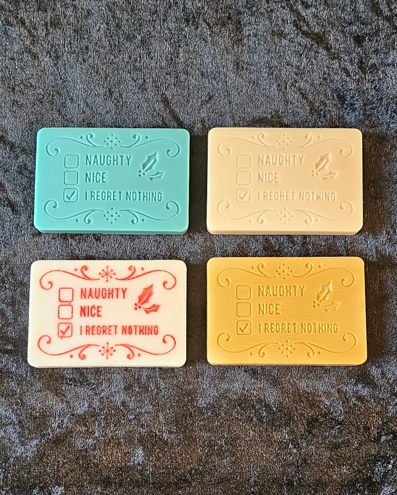 Our soy wax melt naughty but nice bar's are contained with approximately 40g of scented wax, some have added mica and glitter, these are highly scented and all handmade.